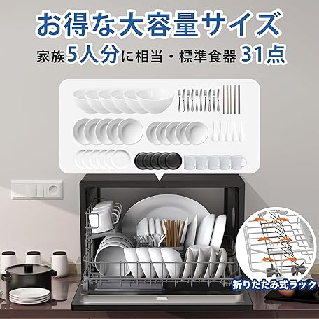Sản phẩm 食洗機 工事不要 3~5人用 大容量 家庭用 31点入り 食器洗い乾燥機 熱風送風乾燥・オートオープン乾燥 食洗器 食器洗浄機 お手入れ機能 折りたたみ給水バケツ付き お手入れ機能 SAMKYO T60 ブラック đang được bán với giá ưu đãi là $364.0164 tại nước Nhật.