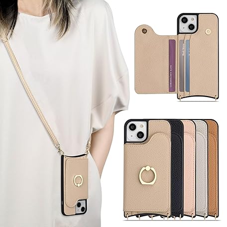 3CCart For iPhone 17 Compatible Model Case, Notebook Type, Shoulder Strap, iPhone 17 Smartphone Case, Card Storage, Smartphone Ring, Stand Function, Detachable Strap, Drop Prevention, Holds 3 Cards
