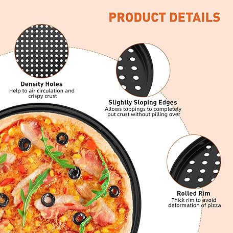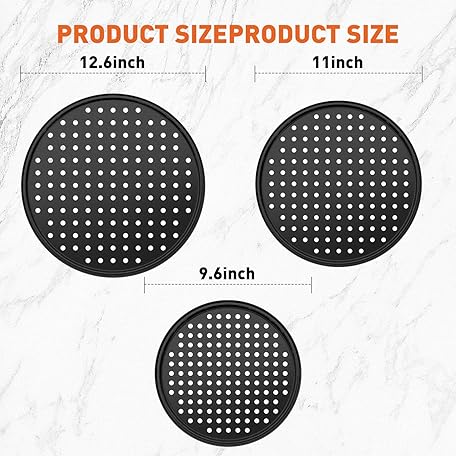 3PCS Round Pizza Pan with Holes, Nonstick Pizza Tray for Oven 9Inch, 11Inch, 12 Inch, Pizza Baking Pans, Perforated Carbon Steel Pizza Bakeware for Home Restaurant Kitchen Baking