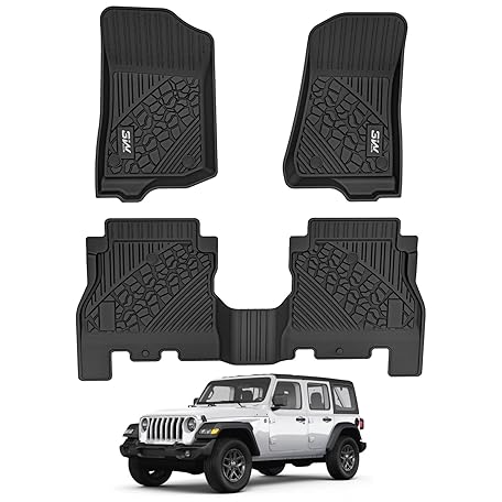 3W Floor Mats for Jeep Wrangler JL 2018-2024 Unlimited 4-Door (Not Fit JK or 4XE) All Weather TPE Floor Liner for 1st and 2nd Row Full Set Car Mat Black