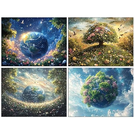 • 4個セッ ダイヤモンドアート 円形のビーズ 地球 ダイヤモンドアート キット DIY・手作り絵画芸術品 全面貼り付けタイプ DIY 初心者 大人の子供 向け 刺繍キット 家の装飾 の贈り物 70x90cm
