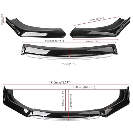 4 Split Front Bumper, Compatible with Toyota CH-R NGX10, 50, ZGX10, ZYX10, Front Lip Spoiler, Upgrade Anti-Scratch Protector, Universal Use, Aero DIY Accessory, Custom Exterior Parts 6044A#