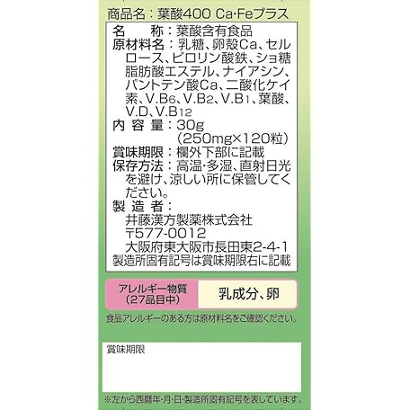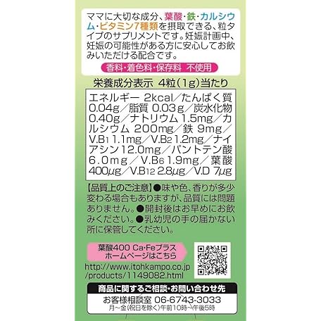 Thông tin sản phẩm 井藤漢方製薬 葉酸サプリメント【ママのサプリ 葉酸400 Ca Fe+ 約30日分】