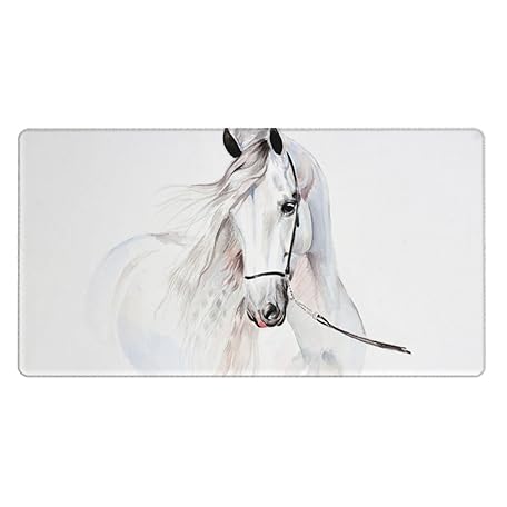 • 馬柄 ウマ 白 絵画 マウスパッド 大型 ゲーミング デスクマット 特大 おおきい キーボードパッド ゴム底 エレコム 光学式 マウス対応 滑り止め 耐久性 防水 サイバーカフェ オフィス最適 適度な表面摩擦 40cm X 75cm