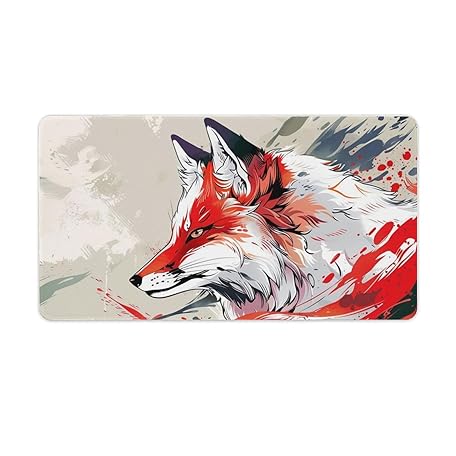 • マウスパッド 日本のアニメ風の赤と白のキツネ ゲーミングマウスパッド 動物イラストアート 超リアルな動物イラスト キーボードパッド 大型マウスパッド 滑り止めゴム底 マウス対応 仕事 ゲーム オフィス ホーム用 耐洗い表面 快適操作性 40X75cm
