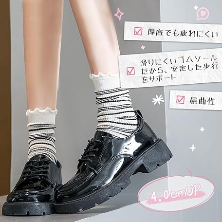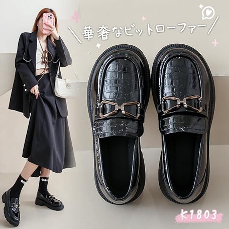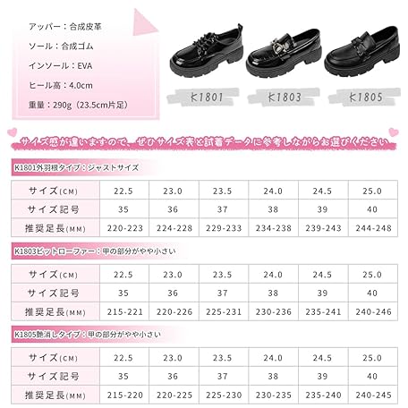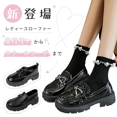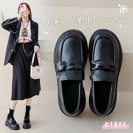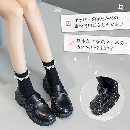 Thông tin sản phẩm PAFHL Loafers, Ladies, Students, Girls, Thick Soles, Heels, 1.6 inches (4 cm), Student Shoes, School Shoes, Easy to Walk, Lightweight, For Work or School Commutes, Water Repellent, Black, black01