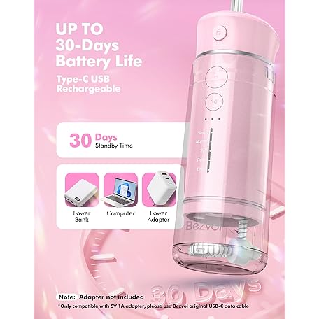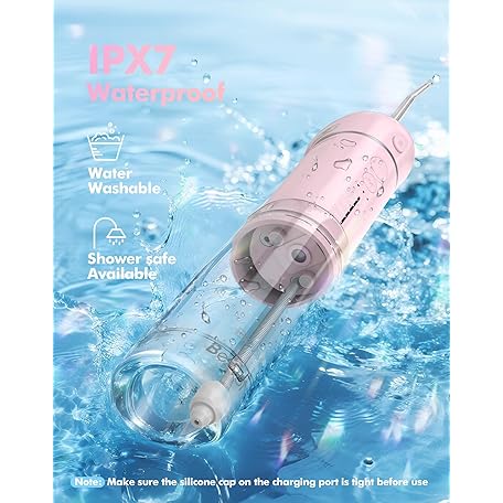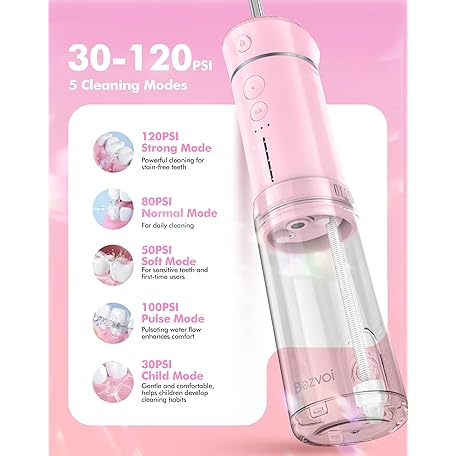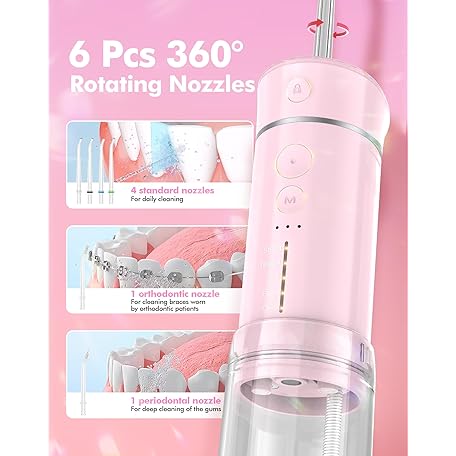 • ウォーターフロッサーミニコードレスポータブル:5モードウォーターデンタルフロス 伸縮式ウォータータンク付き 6つのチップ IPX7防水口腔洗浄器 歯のクリーニング歯茎 矯正歯科矯正歯科矯正歯科 歯科治療用 (ピンク)