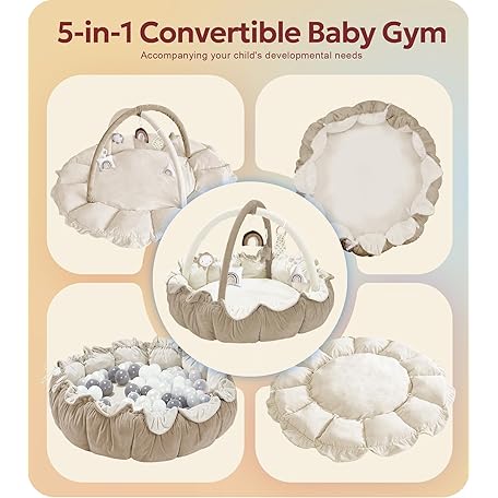 Thông tin sản phẩm 5-in-1 Thick & Plush Play Gym, Convertible Stage-Based Developmental Activity Gym & Play Mat from Baby to Toddler, Ball Pit, Pet Cushion, Balls are not Included, Brown