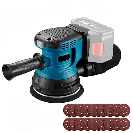 • 5インチ コードレスランダムオービタルサンダー Makita 21Vバッテリー用 小型パームロータリーサンディングツール 調節可能なスピードパワーサンダー 集塵機付き 木工用サンドペーパー20個 (ツールのみ)
