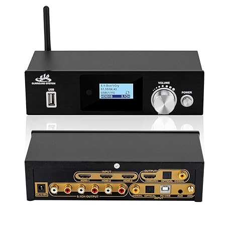 • 5.1 サラウンドサウンドデコーダー セパレーター コンバーター DTS AC3 4K 60Hz HDMI 3 in 1 Out HDCP 2.2 HDR デジタル アナログ オーディオ ビデオシステム 192Khz/24bit BT-5.0 レシーバー付き(ブラック、4K 60Hz)