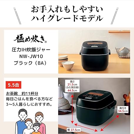 Sản phẩm 象印マホービン 炊飯器 5.5合 極め炊き 豪熱大火力 圧力IHタイプ 日本製 お手入れ点数2点 ブラック NW-JW10-BA đang được bán với giá ưu đãi là $378.448 tại nước Nhật.