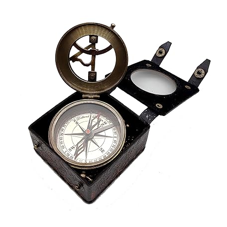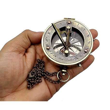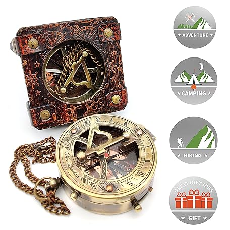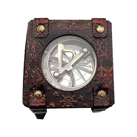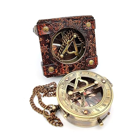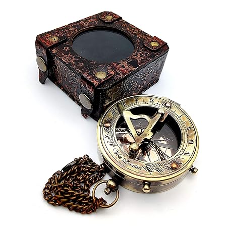 Sản phẩm 5MoonSun5's Antique Brass Sundial Compass Marine Boat Gift Pocket Sun Dial Leather Display Box Nautical Gift Sun Watch Pirate Ship Replica Watch Steampunk Accessories đang được bán với giá ưu đãi là $50.6305 tại nước Nhật.