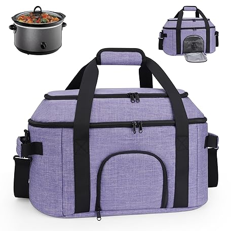 • ダブルレイヤー スロークッカーキャリーバッグ 6-8クォート クロックポットとハムルトンビーチ用 シースルーウィンドウ付きポータブルキャリアケース 家族の集まりに 蓋ファスナー付きトラベルバッグ パープル