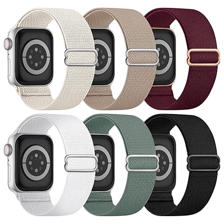 6本パック 伸縮性ソロループ Apple Watch用バンド 45mm 46mm 44mm 42mm 49mm 41mm 40mm 38mm メンズ レディース 編組弾性ナイロンストラップ iWatch Series 10 9 8 7 6 5 4 3 SE SE 2 Ultra Ultra 2用, ブラック/スターライト/ミルクティー/ホワイト/サボテン/ワイン。, 38/40/41/42mm