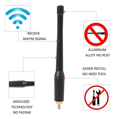 アルミニウム 6インチ ショートアンテナ Jeep Wrangler JK JL JLU JT Rubicon Sahara Sport 2007-2024 FM/AM CBアンテナ交換用1パック
