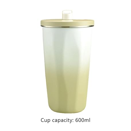 • ストロー付きウォータータンブラー | 600L 魔法瓶ウォーターボトル | ステンレス鋼のコーヒーマグとウォーターボトル、目を引くデザイン、耐久性があり、女性と男性向けの漏れ防止 Avfora