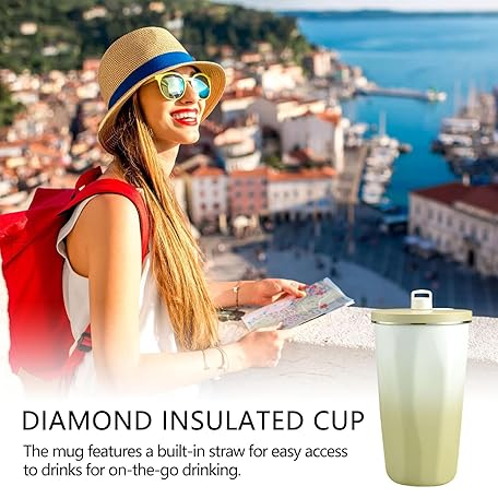 ストロー付きウォータータンブラー | 600L 魔法瓶ウォーターボトル | ステンレス鋼のコーヒーマグとウォーターボトル、目を引くデザイン、耐久性があり、女性と男性向けの漏れ防止 Avfora