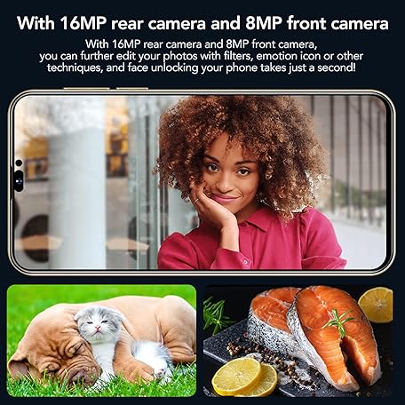 6.1" FHD Screen Face Unlocked 3G Cell Phone, Dual SIM, 2GB/32GB, 5MP/8MP Dual Camera, 4000mAh High Capacity Battery, GPS Positioning (Gold)