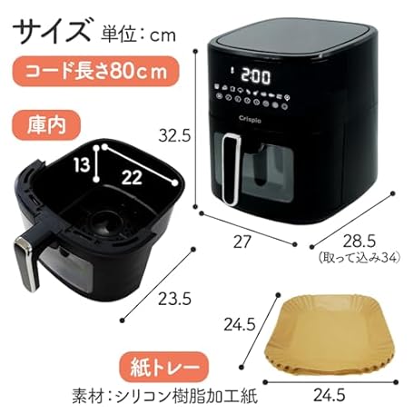 • 大型 ノンフライヤー 6.3L 4~8人分 電気フライヤー エアフライヤー タッチパネル 温度調整 揚げ物 惣菜 透明窓