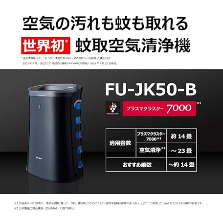Sản phẩm シャープ 空気清浄機 蚊取機能付 プラズマクラスター 7000 スタンダード 14畳 / 空気清浄 23畳 ウイルス 花粉 2018年モデル ブラック FU-JK50-B đang được bán với giá ưu đãi là $148.9485 tại nước Nhật.