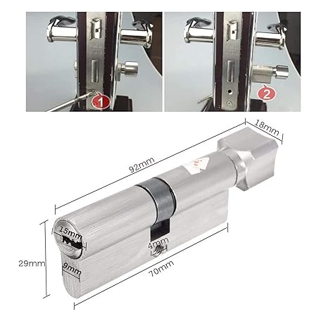 • サムターンユーロシリンダーロック、ロックシリンダーセキュリティ70mm 90mmドアロック真鍮シリンダーシングルオープンノブエキセントリックエントランスベッドルームシリンダー銅ドアバレルロック