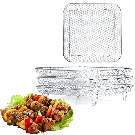 • 7.8インチ エアフライヤーラック 積み重ね可能 ステンレススチール 脱水機ラック 角型エアフライヤーアクセサリー ローストクッキング用 3個パック - オーブン&食器洗い機対応