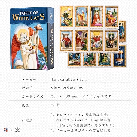 78 Tarot Cards, Waite Edition, Tarot of White Cats Mini, Fortune-Telling, Japanese Instruction Manual Included (English Language Not Guaranteed), Authentic