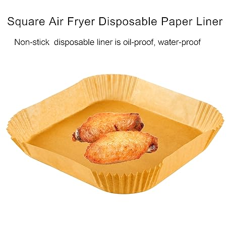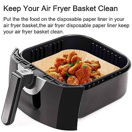 7.9" Air Fryer Disposable Paper Liner for Philips Air Fryer, Instant Vortex, COSORI Air Fryer, 100 Square Air Fryer Paper Liners, Non-Stick Parchment Liners, Air Fryer Accessories