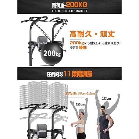 懸垂マシン 【7in1多機能・改良バー・耐荷重200kg】 チンニングスタンド 高度11段調節可能 Wolfyok fitness ぶら下がり健康器 けんすいマシーン 筋トレ器具 背もたれ6段 アームレスト3段 土台π字型 ディップス マルチバー付き 筋トレグッズ マルチジム 懸垂器具 筋力 筋肉 背筋 腹筋 大胸筋 トレーニング?