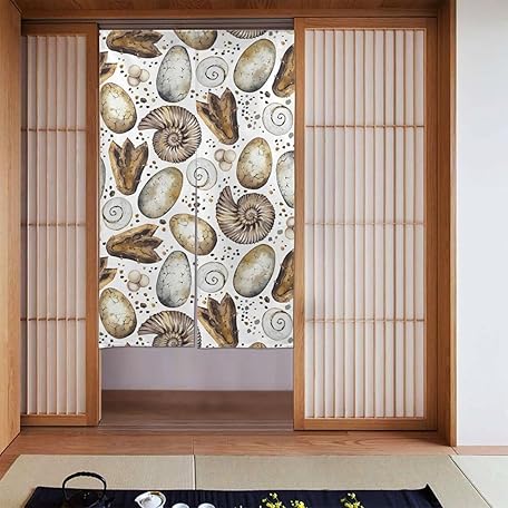 • のれん 恐竜の化石と植物 おしゃれ 間仕切り ロングカーテン 遮光 のれん 玄関 リビング キッチン 出入り口 幅86cm丈143cm vbz41