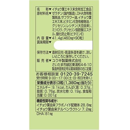 Sản phẩm ユウキ製薬 イチョウ葉 エキス 90粒 約30日分 機能性表示食品 DHA オメガ3 サプリ đang được bán với giá ưu đãi là $21.3967 tại nước Nhật.