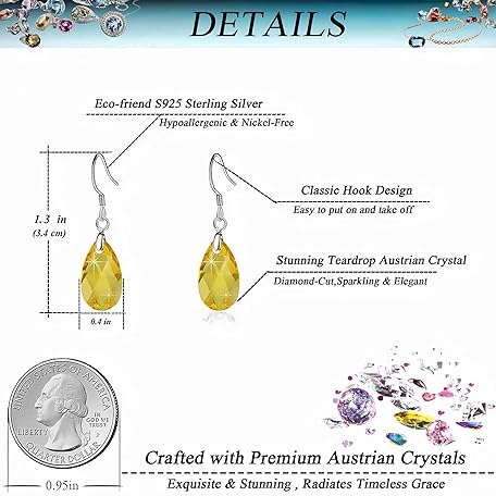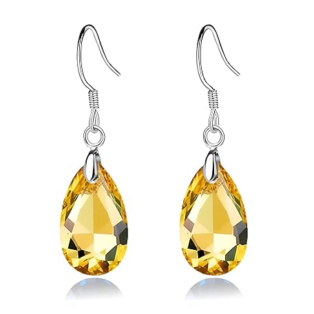 • ティアドロップ スワロフスキー クリスタル ドロップ ダングル イヤリング レディース 925 スターリングシルバー フック 低刺激性 イヤリング