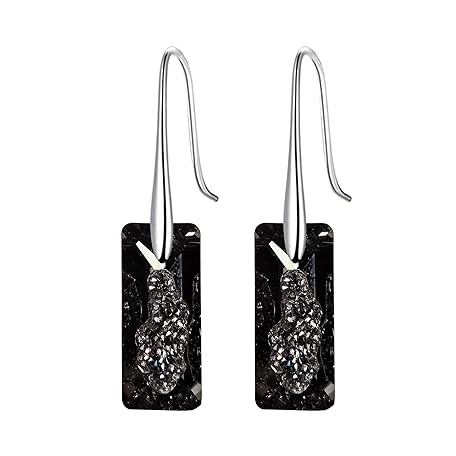 低刺激性イヤリング 925スターリングシルバー ドロップイヤリング レディース クリスタル スワロフスキー ブラッククリスタル ドロップフックイヤリング ママ用