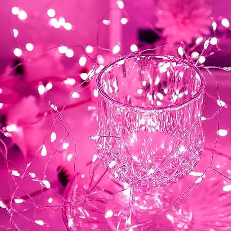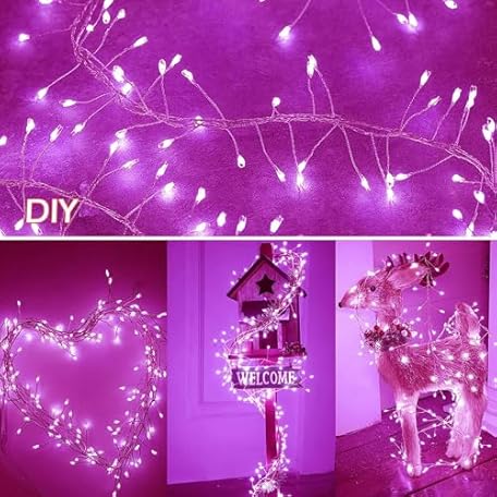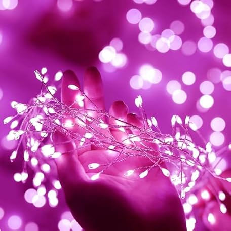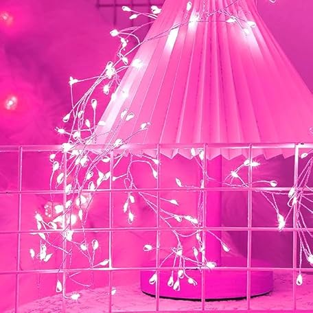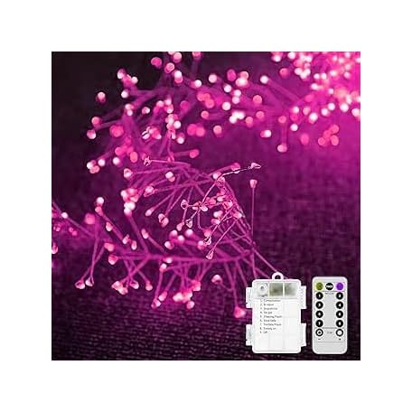 Thông tin sản phẩm Firecracker String Lights, 9.8ft 100 LED Christmas Lamps Battery Powered 8 Modes Copper Wire Lamp String Garden Wedding Christmas Party Ornament, (Pink)