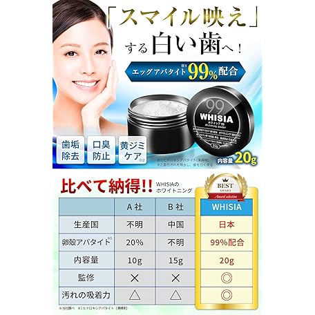 Thương hiệu WHISIA là cái tên nổi tiếng được rất nhiều khách hàng trên thế giới chọn lựa. Với kiểu dáng đẹp mắt, sang trọng, sản phẩm 【アパタイト99%配合】 歯 ホワイトニング ホワイトニングパウダー 歯磨き粉 歯石 ほわいとにんぐ (アパタイト99% (内容量20g)) là sự lựa chọn hoàn hảo nếu bạn đang tìm mua một món cho riêng mình.