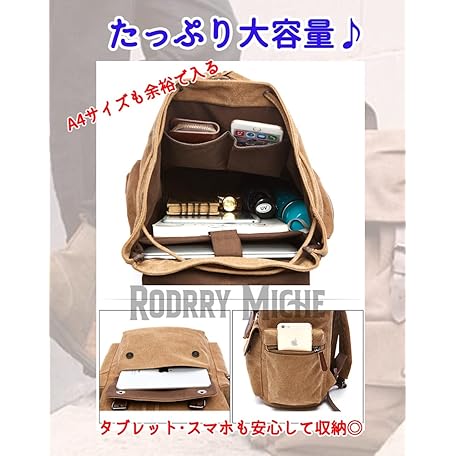 Sản phẩm [ロドリーミシェ] 帆布 キャンバス リュックサック 大容量 アウトドア 通勤 通学 a4対応 男女兼用 đang được bán với giá ưu đãi là $34.5748 tại nước Nhật.