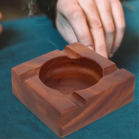 Abaodam Real Walnut Wood Ashtray Tabletop with Large Groove for Delicate Carving and Engraving, Holds Both Cigars and Cigarettes, Maintain a Clean Desk Environment
