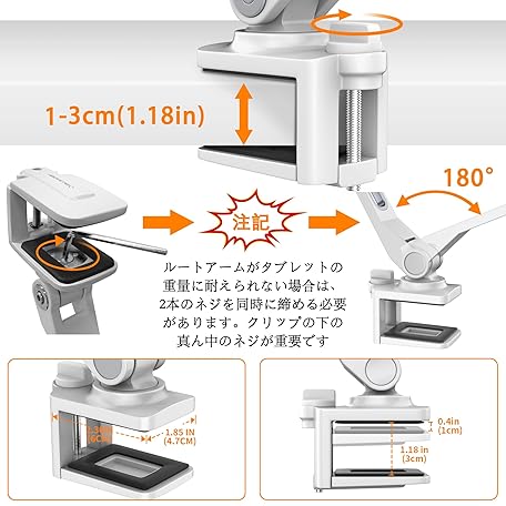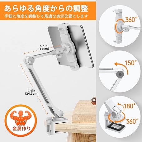 Thông tin sản phẩm AboveTEK Sturdy iPad Stand Holder, Clip-On, Aluminum Long Arm, iPad Tablet Mount/Smartphone, 360° Rotation, Tablet PC Stand, Smartphone Angle Adjustable, 4-11 inch Compatible with iPhone, iPad, iPad