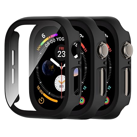 Adorve 3パック 強化ガラスケース Apple Watch Series 10用 スクリーンプロテクター 42mm用 ハードPCフェイスカバー 全体保護 傷防止 衝撃吸収ケース iWatch 42mmアクセサリー用 ブラック/ブラック