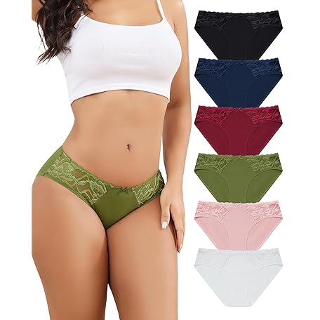 Aijolen レディース コットン ビキニ パンティー レース チーキー 下着 女性用 通気性 ソフト 下着 レディース パック S-XL, マルチカラー - A, Large