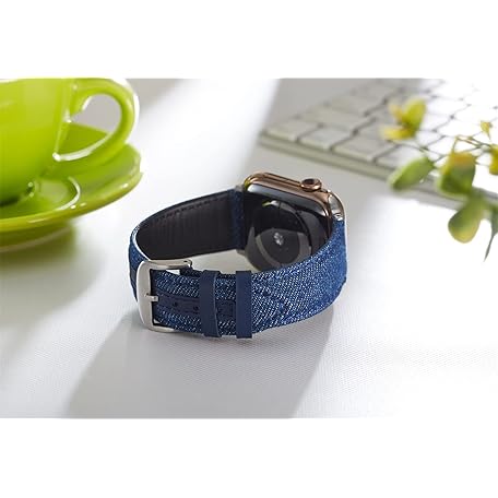 Aikutaysa for Apple Watch 6/5/4/3/2/1/SE, Denim Watch Strap with Jeans Adapter, Compatible Apple Watch Band