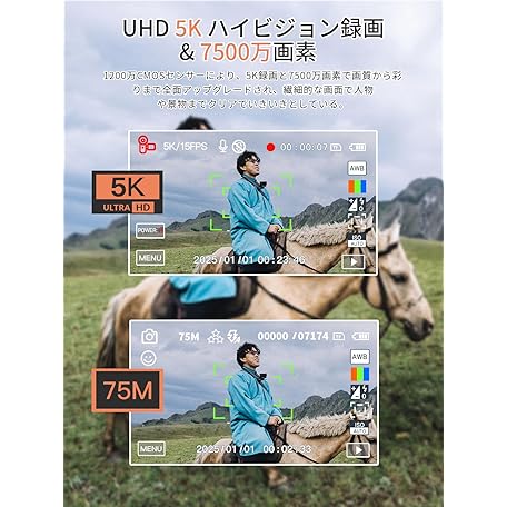Thông tin sản phẩm AiMike 5K Digital Camera for Smartphones, Digital Camera, WiFi Transmission Function, 75 Million Pixels, 180 Degree Rotation Display, 64 GB Micro SD Card Included, 18x Digital Zoom, Auto Focus