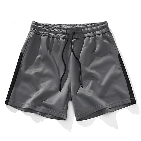 AIMPACT メンズ ワークアウト スウェットショーツ 5インチ コットン カジュアル フィットネス メンズ アスレチック ジムショーツ ポケット付き, サイドストライプ付きグレー, Small