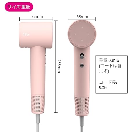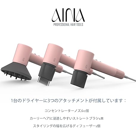Thông tin sản phẩm AINA Hair Dryer with Diffuser, Magnetic Accessories, Popular, Large Airflow, Quick Drying, High Concentration of 200 Million Negative Ions, 110,000 RPM, 23m/s Hot / Cold Cycle for Hot Air and Hair