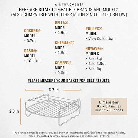 Thương hiệu INFRAOVENS là cái tên nổi tiếng được rất nhiều khách hàng trên thế giới chọn lựa. Với kiểu dáng đẹp mắt, sang trọng, sản phẩm Air Flyer Skewer Rack Lattice for Cosori Chefman Philips and More Double Rack Cabob Air Flyer Accessories for Bella Dash Nuwave® Brio Multipurpose Stainless Steel là sự lựa chọn hoàn hảo nếu bạn đang tìm mua một món cho riêng mình.