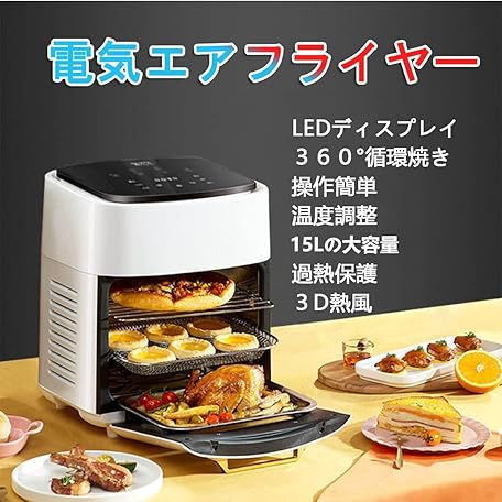 Sản phẩm ノンフライヤー電気エアフライヤーAir fryer 油なし 15L コンパクト エアーフライヤー ノンオイル タッチパネル 低カロリー ダイエット ヘルシー 過熱保護 タイマー 温度調整 LEDディスプレイ 操作簡単 家庭用 120°可視化ガラス窓 3D熱風360°循環焼き 1台5役 1~7人用 đang được bán với giá ưu đãi là $89.8487 tại nước Nhật.