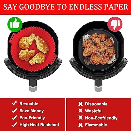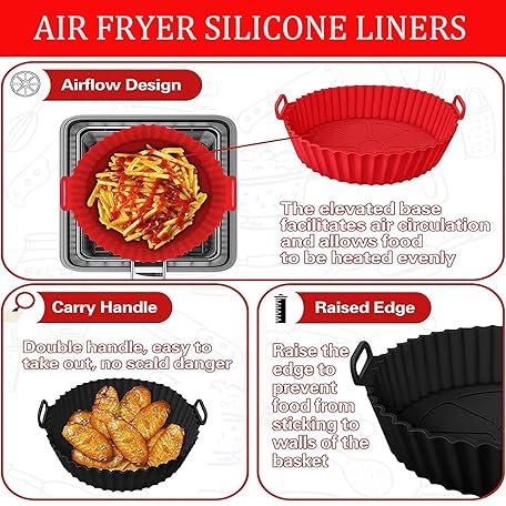 Thông tin sản phẩm Air Fryer Silicone Liner for Ninja Air Fryer AF101 4QT AF161/AF150 5.5 Quart COSORI, Gourmia, PowerXL, InstantPot, Fabuletta, Philips Air Fryer 4QT for Most 3-5QT Air Flyers Better than Paper Liners