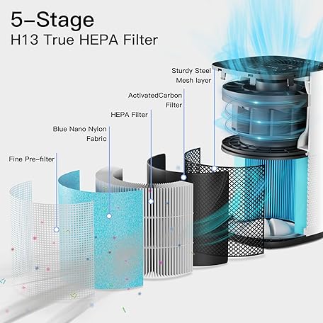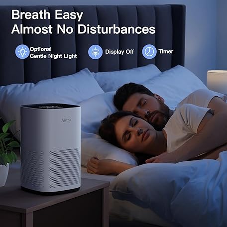 • AIRTOK Air Purifier, Suitable for Large Room in Home Bedroom with H13 True HEPA Filter, Removes 9.9% to 0.1ml | Ozone Free, Night Light