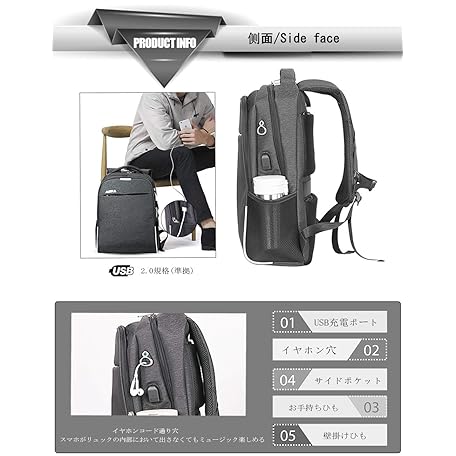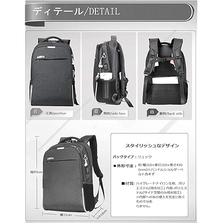 Thông tin sản phẩm AISFA Backpack, PC, Business Backpack, Waterproof, Rucksack, Large Capacity, Laptop Bag, USB Charging Port Included