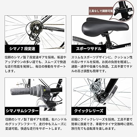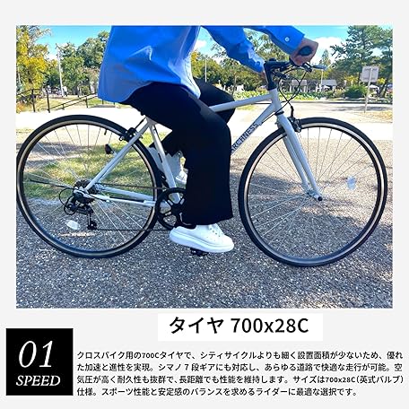 AIT7007-3 Cross Bike, Bicycle Tires, 700X28C, Shimano 7 Speed Gear, Equivalent to 27 Inches, Lightweight, Front and Rear Caliper Brake, For Work or School Commutes